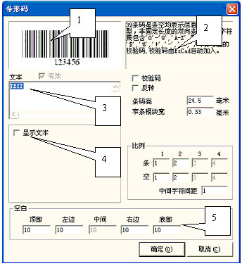 字体:当前要显示文本的字体 文本高度:文本的平均高度 文本宽度:文本的平均宽度 文本X偏移:文本的X偏移坐标 文本Y偏移:文本的Y偏移坐标 文本间距:文本之间的间距 5.空白 是指条码反转时,可以指定条码周围的空白区域的尺寸。